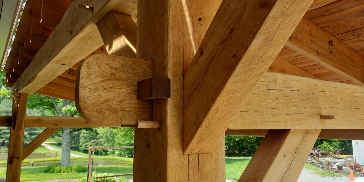 If you request, we can meet you on the site you wish to build. Learning what you're after, we can sketch up some visuals and fine tune alongside you till we reach final drawings. The design of the frame is very customizable to showcase the intricate woodwork. Each wood species has its uses and aesthetics, which you will have the choice of. Though these timbers will last hundreds of years, applying whatever your choice of oil, stain or paint, these structures can last thousands of years. The roughness of these timbers can be planed, sanded or left rough sawn depending on your preference. After the design has been established, we get to cuttin. Timber Frame Construction is not a "production" way to build but a “forever” way. The frame that is raised in a day or two's time, will be marveled at by all for as long as it stands.